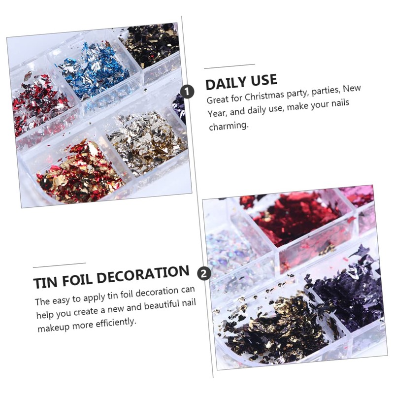 - Nail foil:the easy-to-apply tin foil decoration can help you create a new and beautiful nail makeup more efficiently,nail sequins