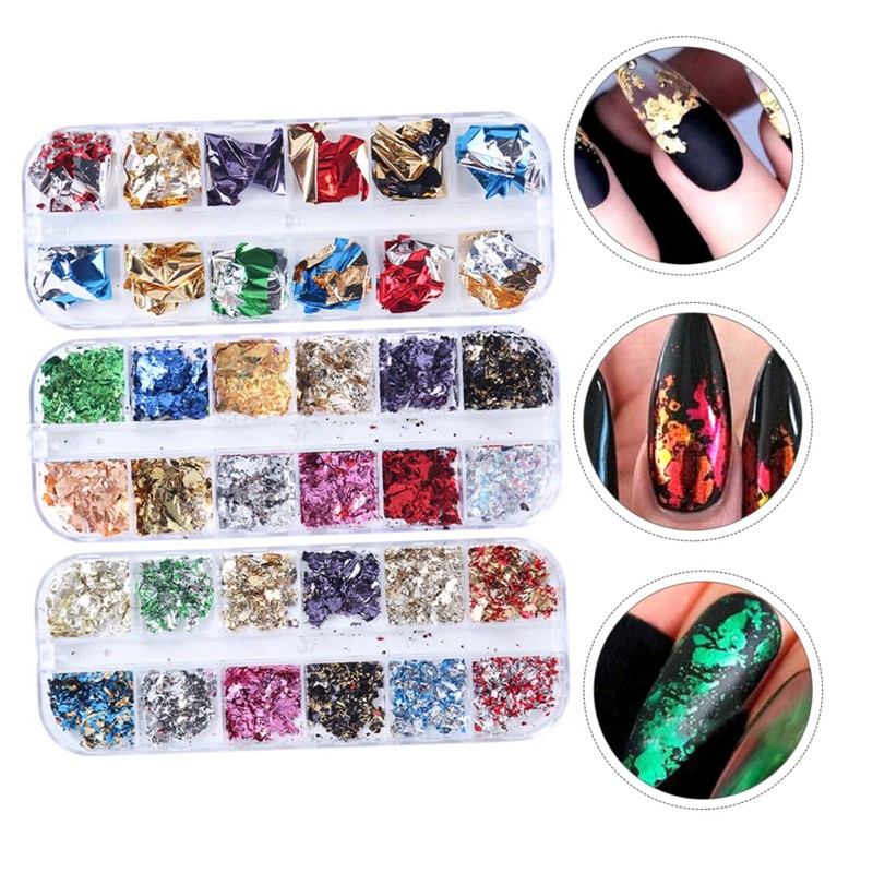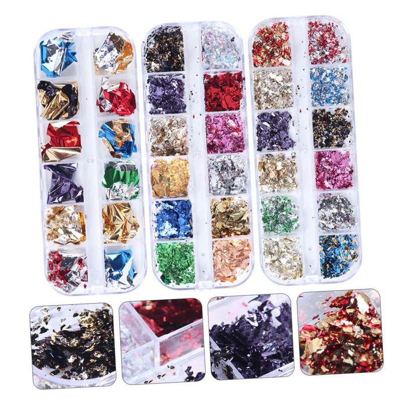 Baluue 3sets DIY Nail Set Sequin Glitter Nail Art Stickers Art Foil Decorations for Salon Home 3boxes*3