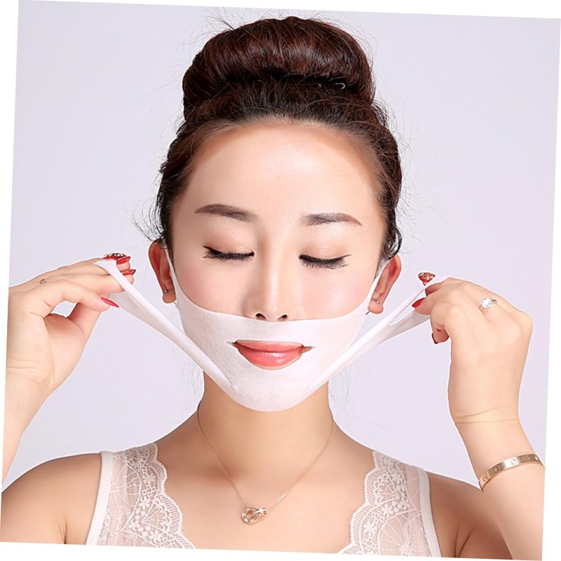 - Maskne-- after washing and toning, place the v-line stretching patch onto the chin area, both side holes on both of the ears, leave it for 20 to 30 minutes for it to fully take effect,after removing, massage the remaining essence onto the v-line area in an upward motion,double chin mask.