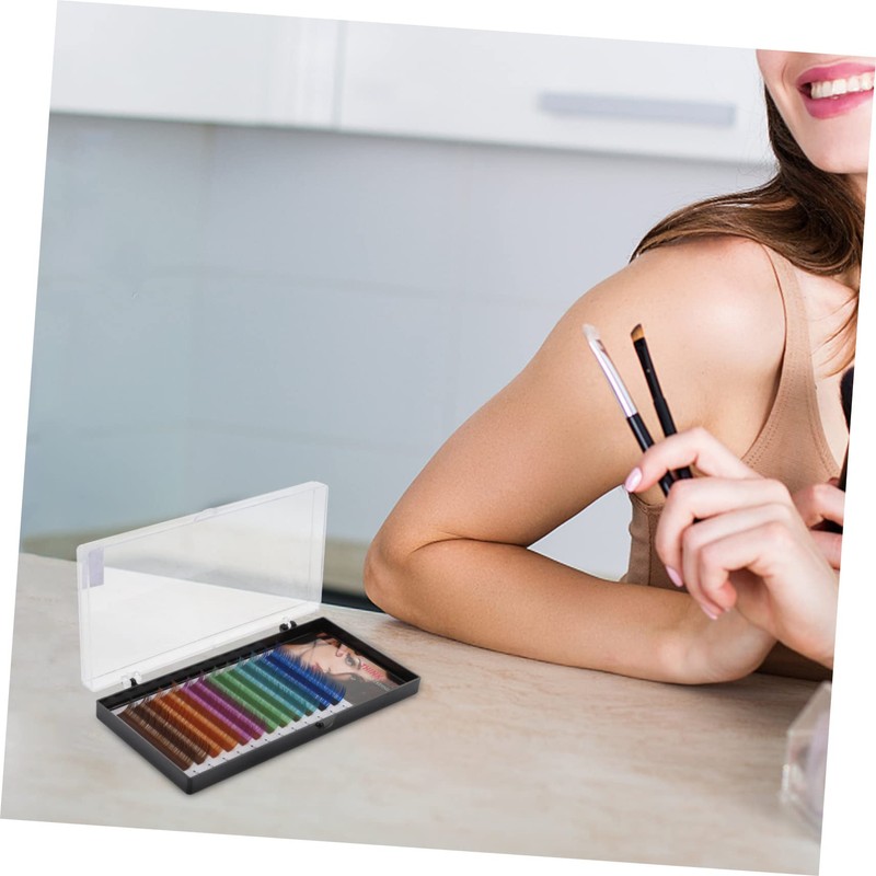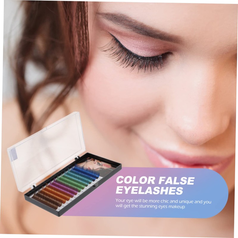 -Size: 10.00X6.00X1.50cm/3.93X2.36X0.59 in colored lash extensions.