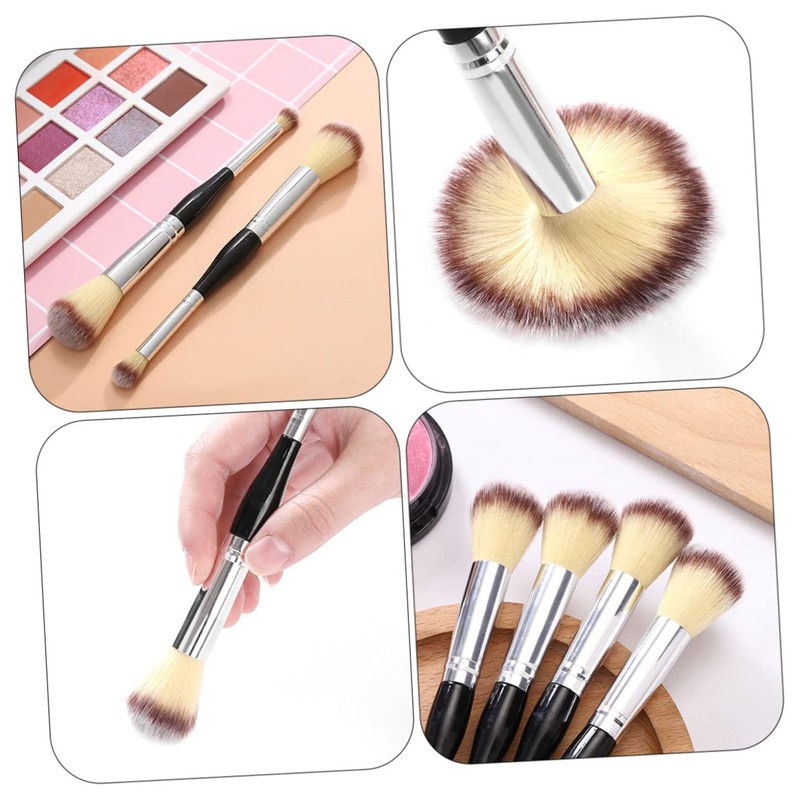 Baluue 4pcs Double Ended Complexion Blending Makeup Brush for Loose Powder Blush Eyeshadow Premium Bristles Soft Dense for Women Makeup Accessories