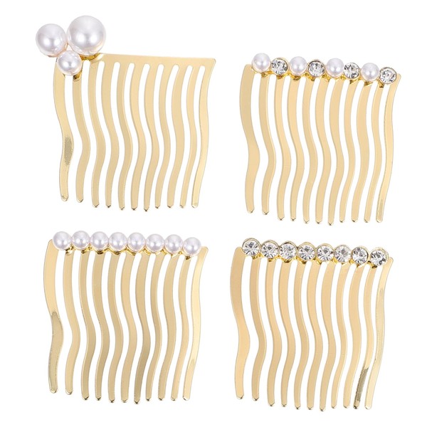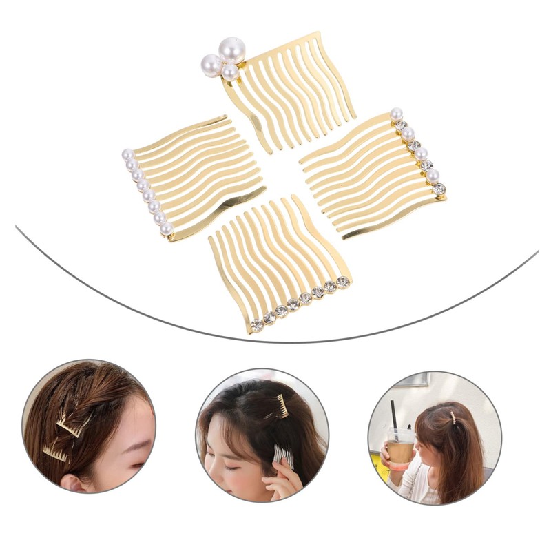 Baluue 4pcs Lightweight Side Comb Set with Pearl Design Portable Hair Accessories for Easy Styling and Hair Care for Daily Use and Preventing Breakage