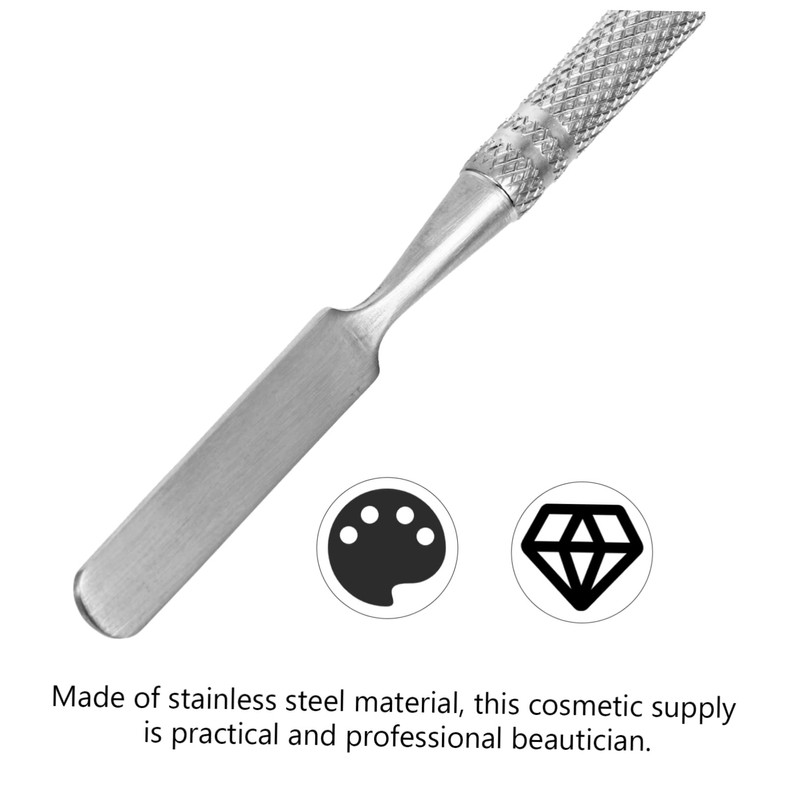 - Depot your favorite eyeshadow, highlighters, and lipstick products from stubborn packaging with the stainless steel makeup spatula metal palette.