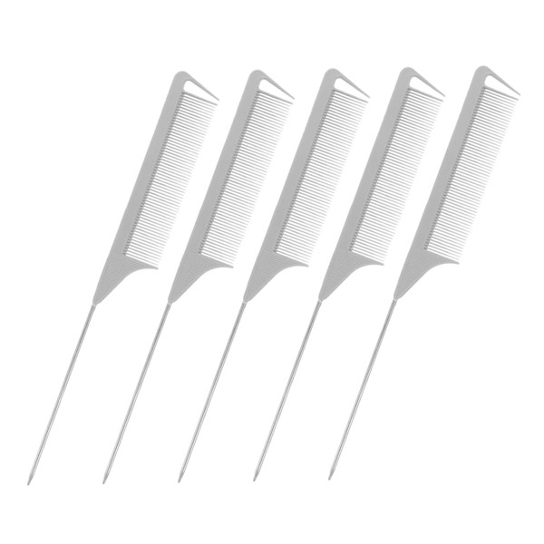 Baluue 5pcs Hair Tools Set Teasing Combs for Hair Dyeing Long Rat Tail Combs for Precision Styling for Stylists for Highlighting and Sectioning