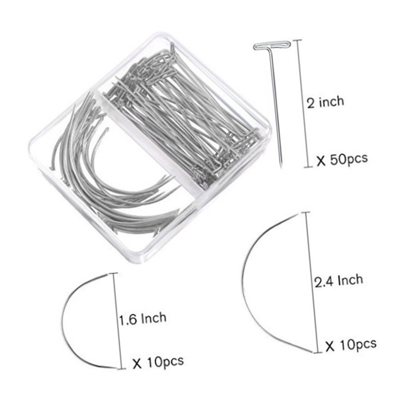 - T-pins & Curved upholstery needles are suitable for tailors, seamstresses, jewelry display, display cases, display boards, blocking knitted projects, modelling, crafts, etc T-Pins Wig.