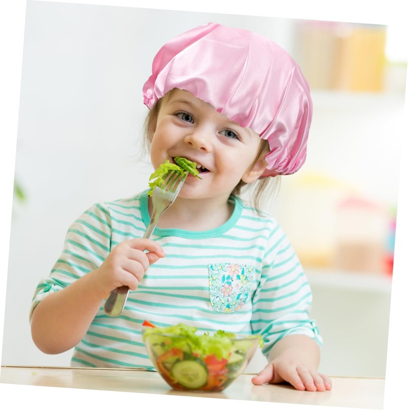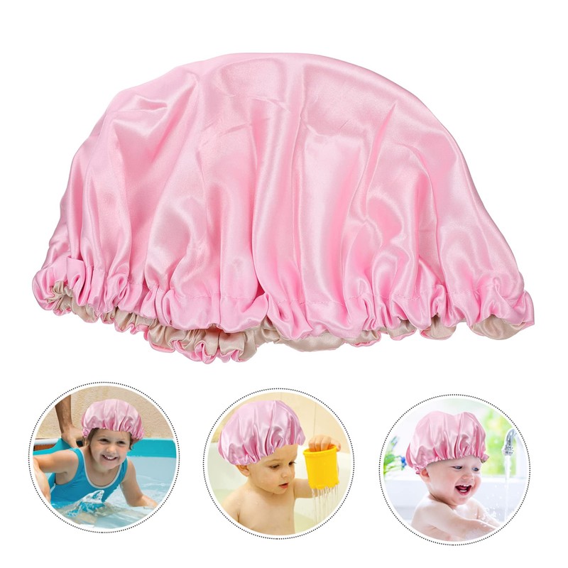 Baluue Double Layer Satin Dome Cap Adjustable Elastic Shower Hat for Boy Girl Soft Comfortable Bathing Cap for Hair Protection and Warmth