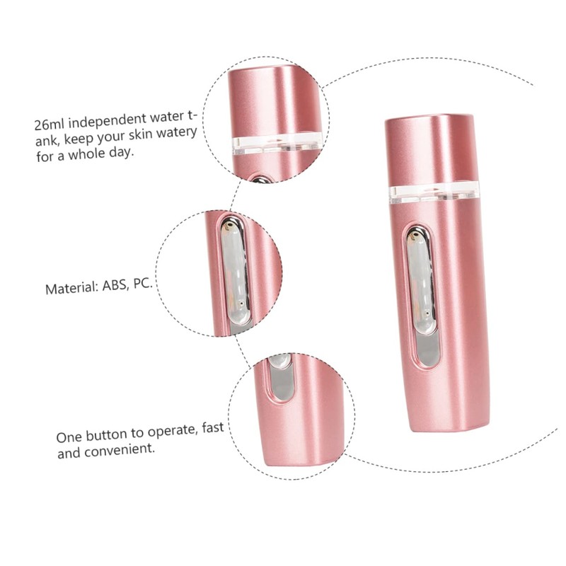 Electronic Facial The mister generating fine and cool mist will helps keep your skin well hydrated.Mini Beauty Skin Care Instrument Portable size, you can conveniently keep it in your purse for hydration throughout the day, yourself off on a hot day.Handy Cool Mist Sprayer This item is a mist sprayer.Sprayer Moisturizing It is made of material, portable, practical and durable