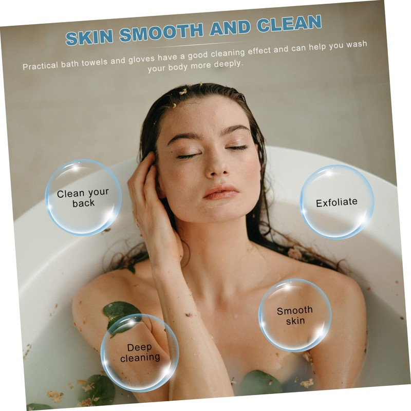 exfoliating mitt This product are made of and designed with a long strip shape and a gloves design, and durable for long time use.body towels for shower Its creative design that you can clean your skin and clean your pores in your body's areas, like your back, neck, shoulders.cleaning scrubber And easy to clean body, save time and energy, great for daily body deep cleaning