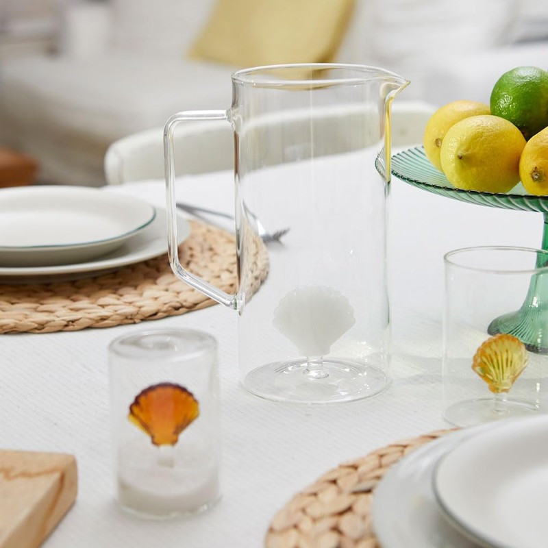 balvi Jug Atlantic Shell Colour White Handmade from Borosilicate Glass 1.3 L