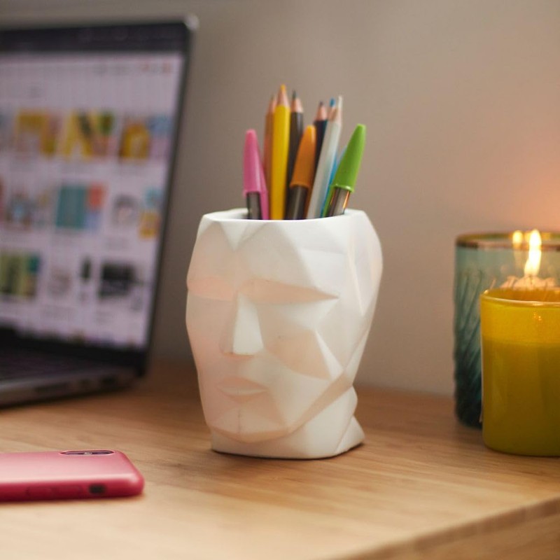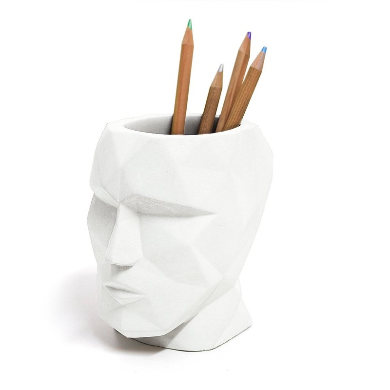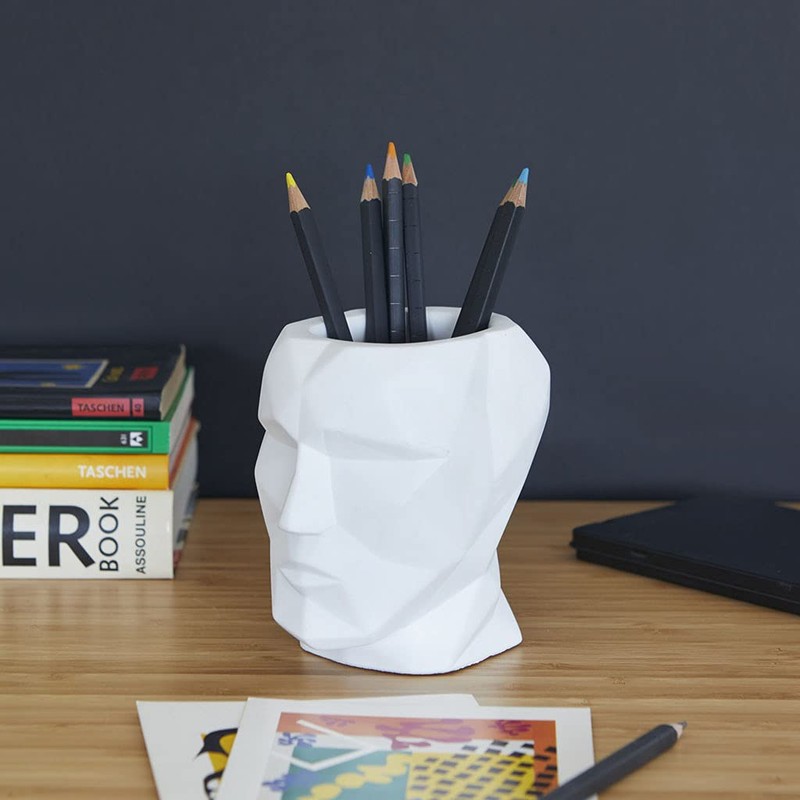 balvi The Head Pen Container White Shape of a Geometric Stylized Head Cement