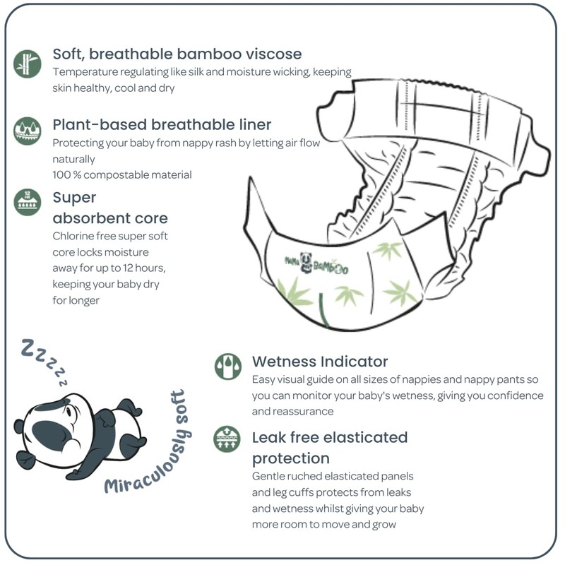 Bamaboo Eco Biodegradable Nappies Quad Pack of 376 Size 2 (3-8 kgs) Luxury Bamboo Chlorine-Free Hypoallergenic