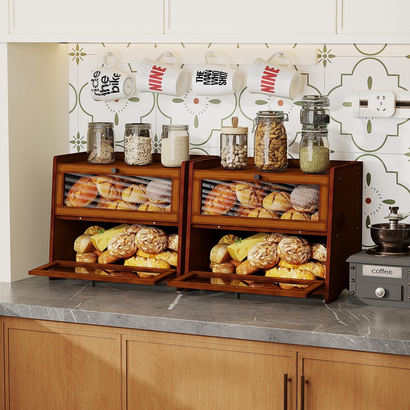 - [Vintage Pantry Revolution] Beyond bread storage for homemade bread, organize fruits, snacks, or baking supplies in designated tiers. This countertop bread box transforms cluttered kitchens into curated spaces.