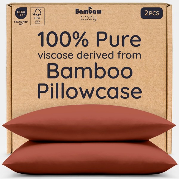 Bambaw 100% Viscose Derived from Bamboo Pillowcase Queen Size – Set of 2 Queen Cooling Pillow Cases for Hot Sleepers with Envelope Closure, Breathable & Super Soft Pillow Cases (Terracotta)