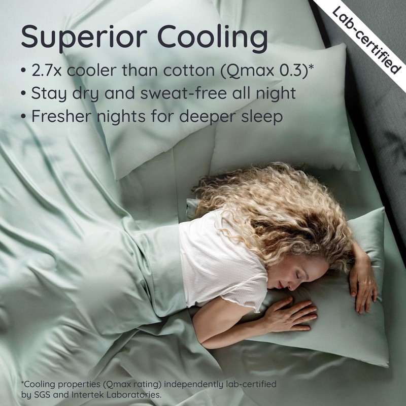 - Cooling Comfort: These king size cooling bed sheets are designed with thermoregulating fabric that keeps your temperature perfectly balanced. Its breathable properties ensure you stay cool, dry and comfortable. Lightweight and airy, this cooling bedding for hot sleepers is ideal for those prone to night sweats, delivering year-round comfort.