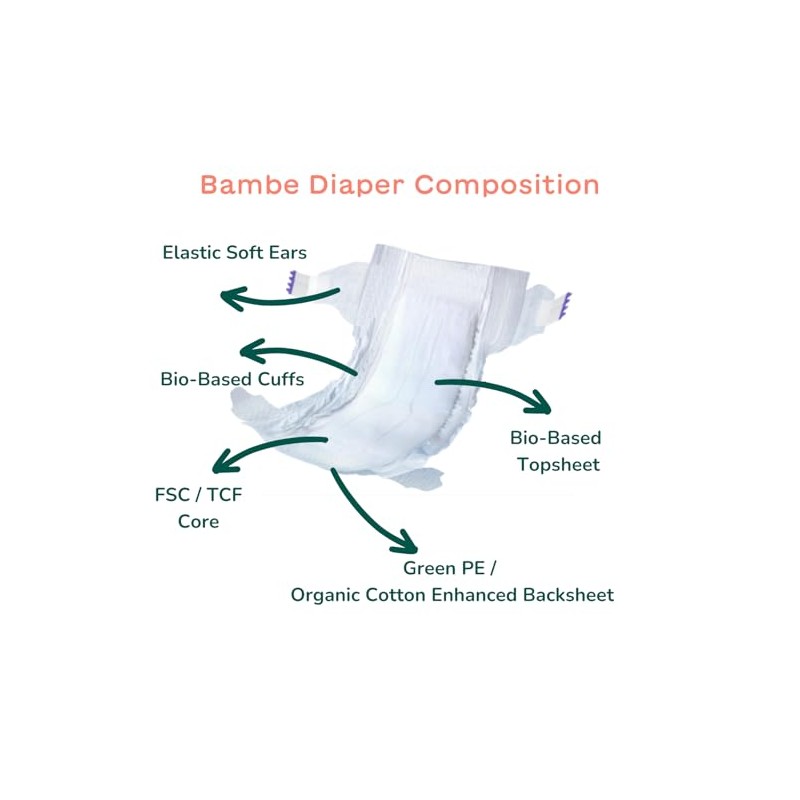 Bambe | Eco Nappies | Small | From Birth to 6kg | Approx 6-12 Weeks | Pack of 40