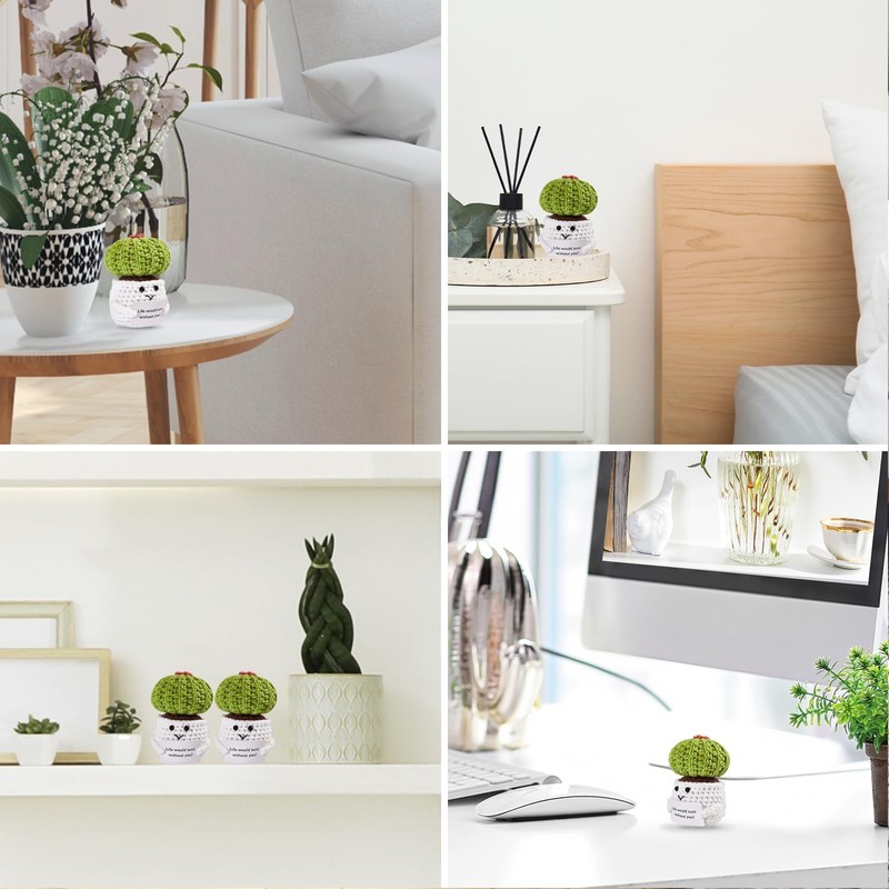 Bambebe Crochet Positive Cactus, Handmade Crochet Desk Decoration Positive Doll, 3 inch Knitted Wool Doll with Positive Card for Cheer Up Gifts and Party, Cute Knitted Cactus Funny Cactus