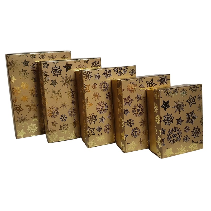 - Box contents: 1 x cardboard set gift box Christmas foiled in Christmas design, consisting of 5 boxes, size : 24.5 x 18.5 x 8 cm and cl: 16.5 x 12.5 x 6 cm.