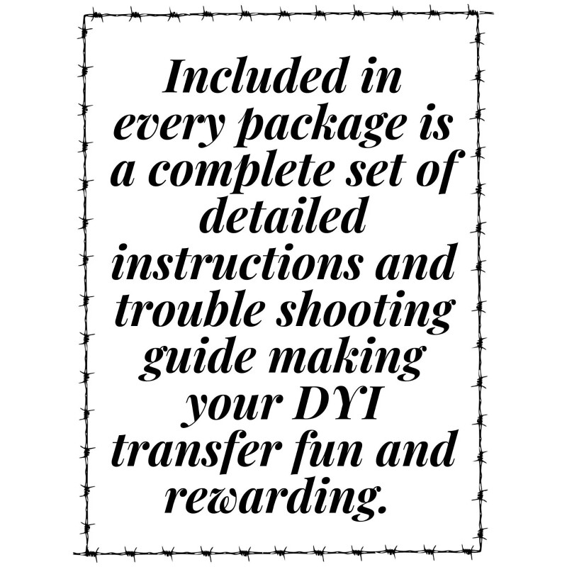 Ouruniquely formulated transfer paper bonds with the fabric, leaving it soft,flexible and able to stretch with NO PEELING!  Once applied, the colors of thetransfer will appear VIVID AND BRIGHT and is FULLY WASHABLE.  This is a great DIY projectthat will work with your household iron on high heat and/or a commercial heatpress.  A complete set of instructionsare included with the iron-on transfer.