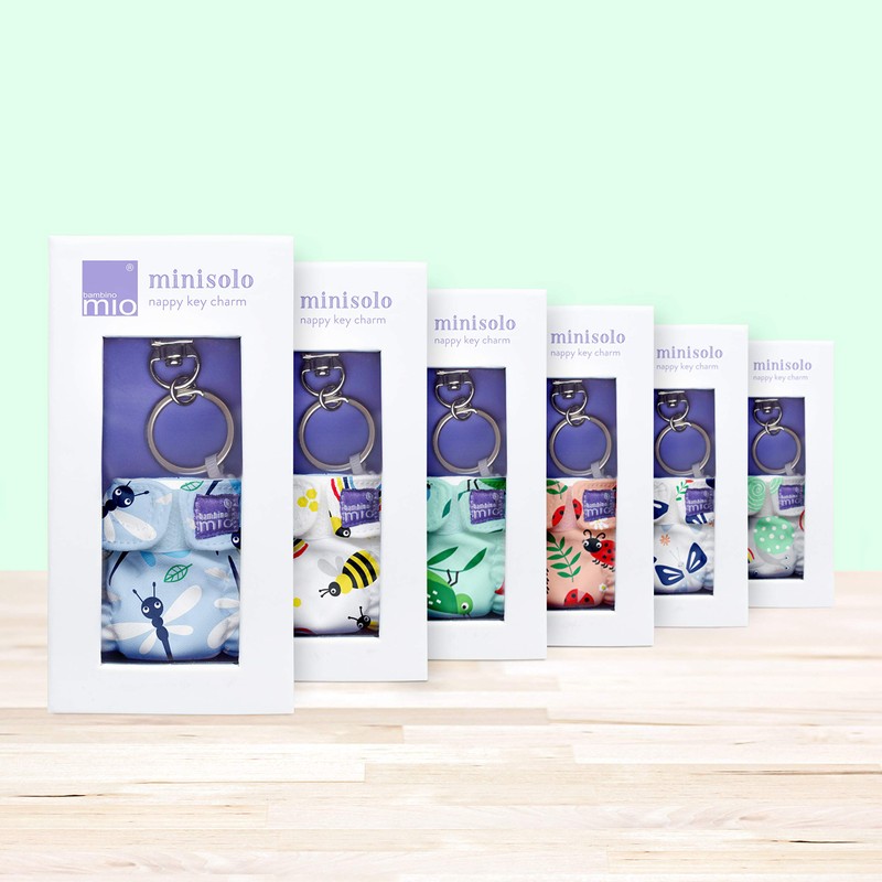 - A mini keyring with maximum cuteness. Show your love for cloth nappies with Bambino Mios sugar-sweet Minisolo nappy key rings