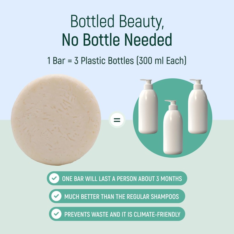 - ✔ Eco-Friendly & Zero Waste – One bar lasts up to 3 months, replacing 3 plastic shampoo bottles (300ml each). A sustainable choice for your hair and the planet.
