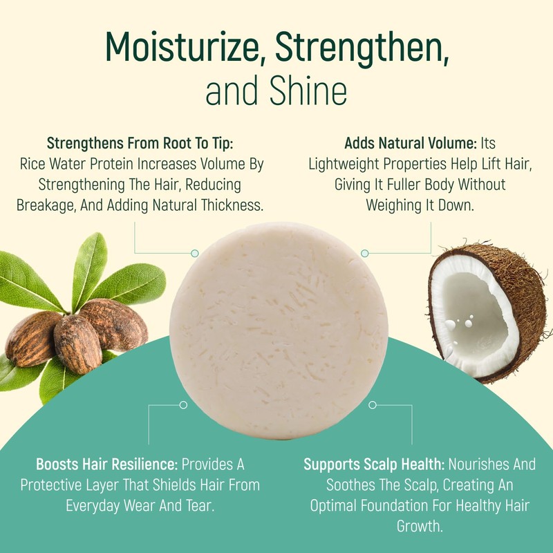 - ✔ Strengthens from Root to Tip – Enriched with 100% natural rice water protein, rice amino acids, and vitamins B7 & C, this shampoo bar helps fortify hair, reduce breakage, and boost natural thickness.