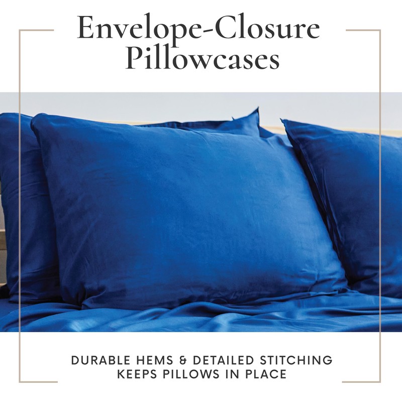 Bamboo Bay Cooling Bamboo Pillowcase 4 Piece Set - Organic 100% Viscose from Bamboo Pillow Cases - Soft, Cool, and Breathable - Premium Envelope Pocket - 20x30 inches (Queen Size, Navy Blue)