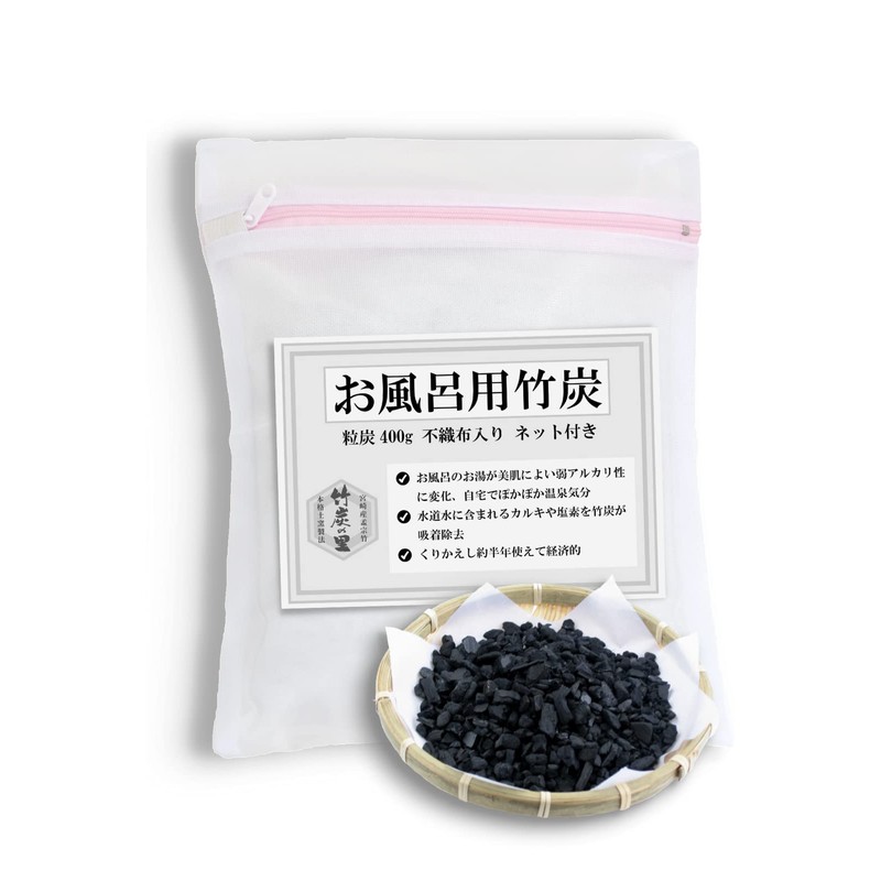 Bamboo Charcoal Sato Bamboo Charcoal for Bath (Granular Charcoal 14.1 oz (400 g), Non-woven Fabric, Net Included), Adheres Chlorine and Pesticides Residue in Tap Water, Adheres to Bacteria in the Bathtub, For Babies, People with sensitive skin, Reusable,