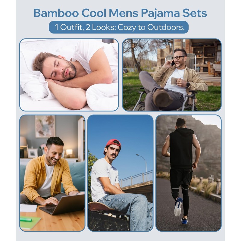 - Summer Cooling: Beat the heat in our bamboo viscose pajama set with natural moisture wicking fabric. Perfect for summer nights as lightweight mens sleepwear or loungewear.
