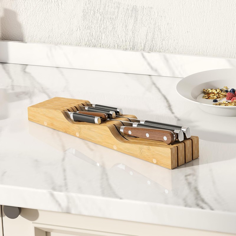 Bamboo In-Drawer Knife Block for 7 Knives(Not Included), Knife Drawer Organizer,Knife Holder Countertop,Block Knife Storage Organizer for Kitchen