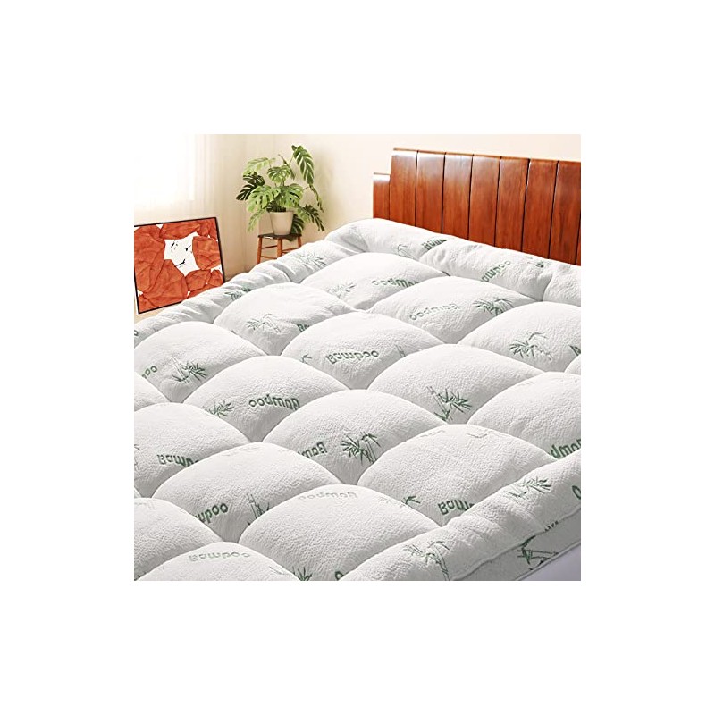 - 【COOL & BREATHABLE】: Encased in 40% of the smoothest, silky soft breathable bamboo fabric, our mattress topper is designed to deliver excellent ventilation and evenly distributes heat to prevent you from feeling hot and sweaty.