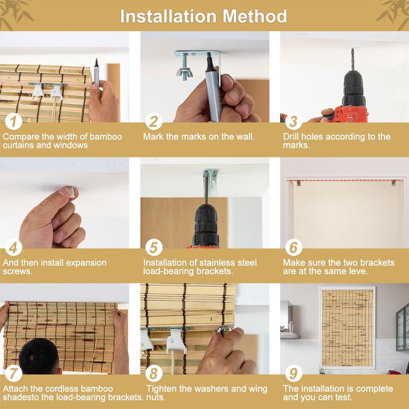 - Made of carefully selected bamboo. Easily installed in minutes with all necessary hardware included. It can be used indoor or outdoor but DO NOT expose to rainwater. Smoothly roll up or down to control sun light and wind in your room.