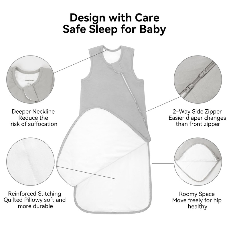 - SAFE SLEEP FOR BABY - We prioritize your baby's safety. The sleep sack features a deeper and narrower neckline to prevent any loose fabric that could pose a suffocation hazard. A zipper protector shields your baby's face from scratching, ensuring a peaceful sleep throughout the seasons. Our breathable fabric reduces the risk of overheating, making it suitable for year-round use.