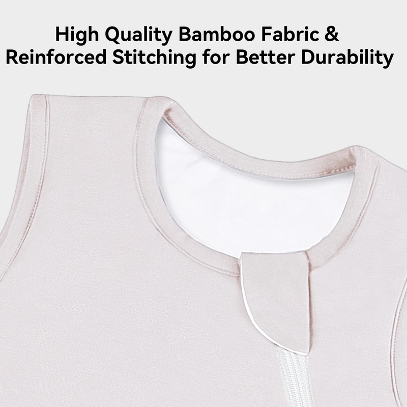 - 【SAFE SLEEP FOR BABY】 We make your baby's safety a top priority. The sleep sack has a deeper and narrower neckline to avoid any loose fabric that could be a suffocation risk. A zipper protector keeps your baby's face safe from scratching, ensuring they have a peaceful sleep throughout the seasons. Our breathable bamboo fabric lowers the chance of overheating, making it perfect for use in any season.