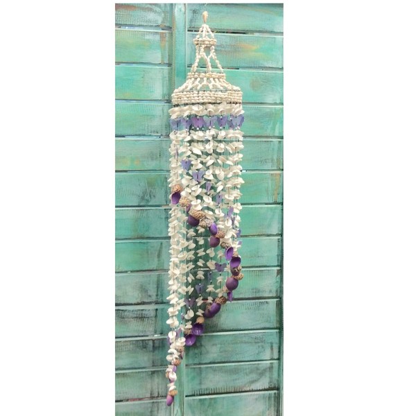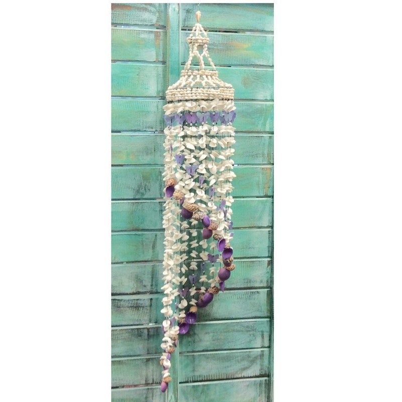 Bamboo Source Tropical Decor Butterfly Stairway Shell Wind Chime 35 Inches x 6 Inches (Purple)
