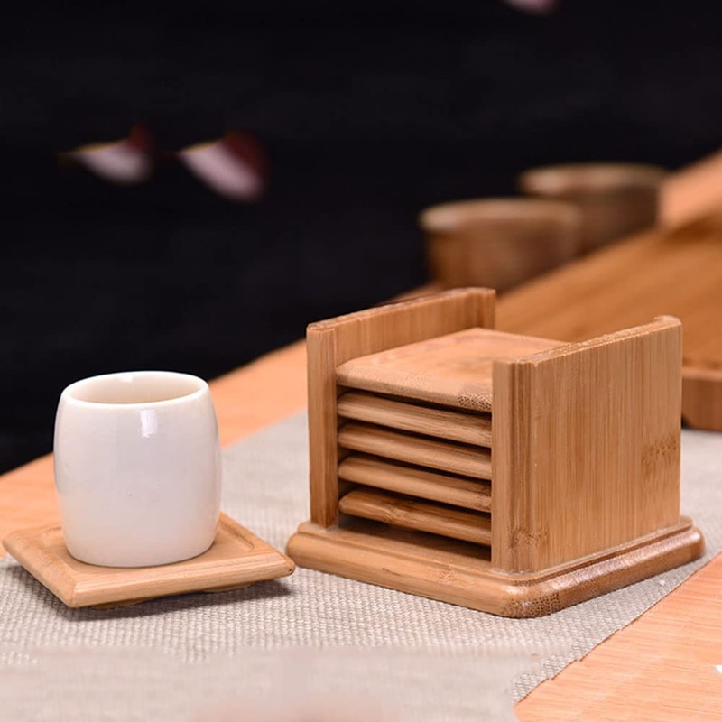 Bamboo Square Round Coasters Holder Set of 6/8 for Drinks with Holder Set Gift for Home Kitchen Table Housewarming (Style 6 6PCS)