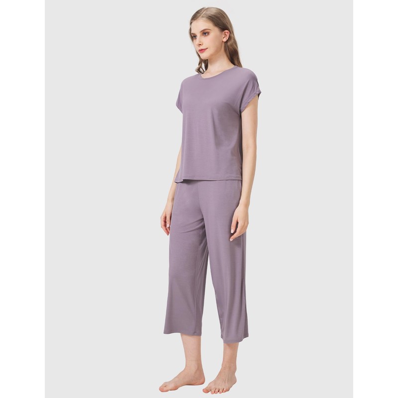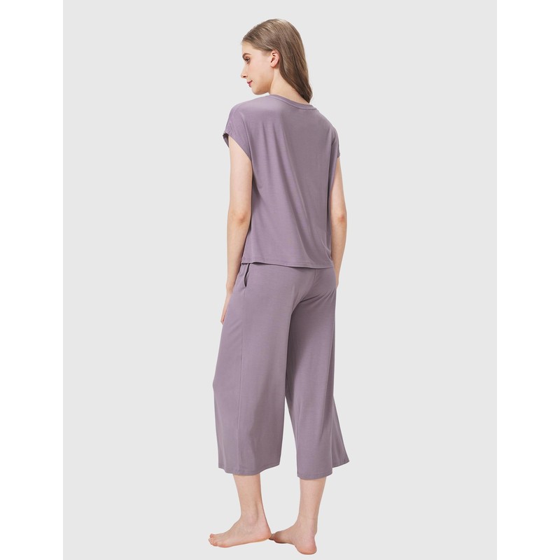 BambooBud Women's Capri Pajama Set Short Raglan Sleeve Sleepwear 2 Piece Loungewear with Pockets Viscose from Bamboo Pjs S-XXL, Violet, XX-Large