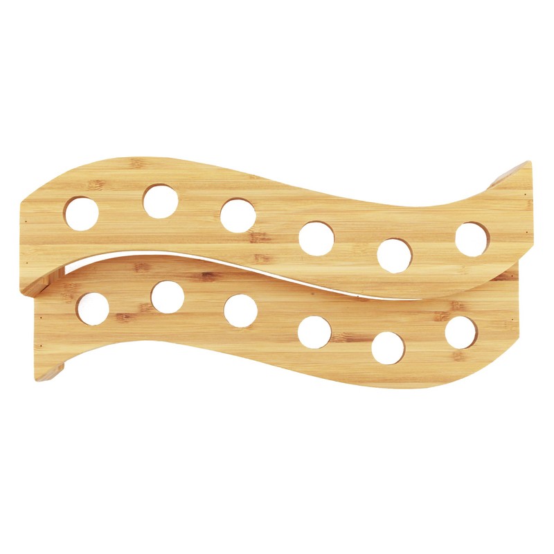 S WAVE MULTI LEVEL BAMBOO CONE STAND AND TEMAKI STAND approx 13" length x 5.7" width x 3.5" height, each hole slots measures to be approx 1" dia