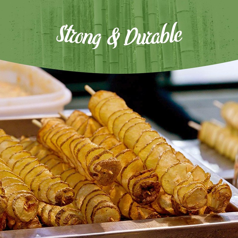 - DISPOSABLE AND DURABLE: Made of 100% bamboo. Bamboo is a great natural and renewable alternative to other materials. It's strong and sturdy, yet more flexible than other kinds of wood.
