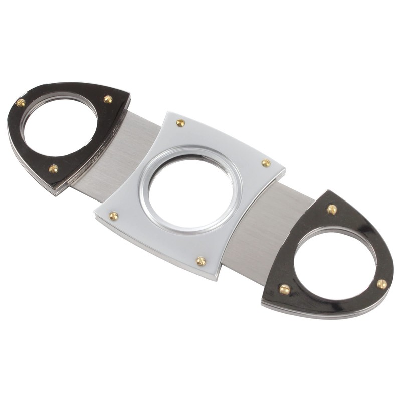 BambooMN Cigar Cutter, Guillotine, Double Blade, in Black Gift Case - Silver - 1 Pack