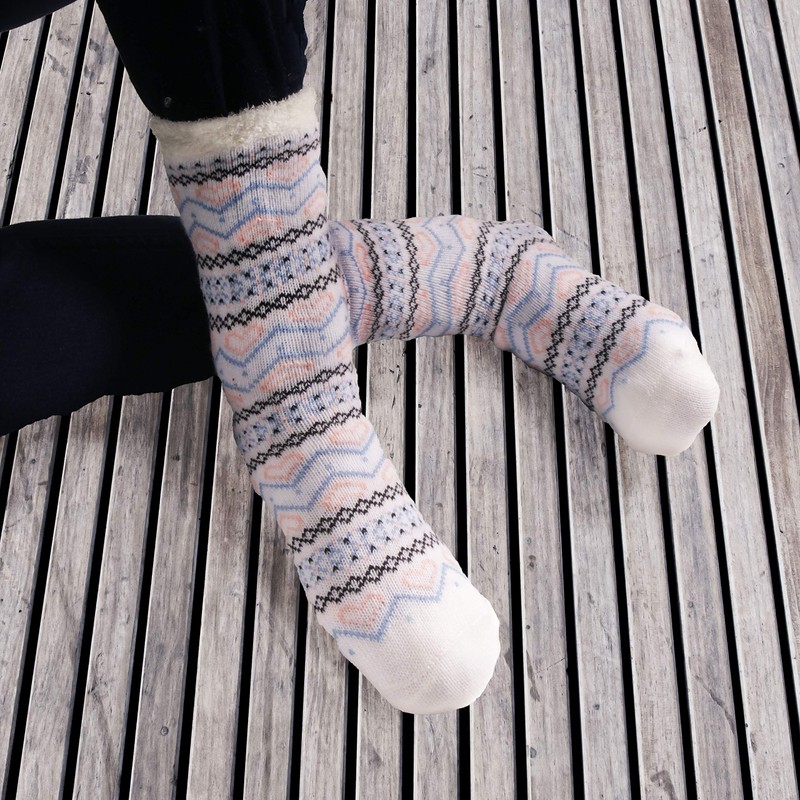 - FEATURES These cozy socks have an anti-slip grip, which is perfect for slippery floors such as hardwood, linoleum, and tiles. They are made of a double layer that maximizes warmth while maintaining breathability. With a super soft, fuzzy interior, these socks are relaxing and comfortable