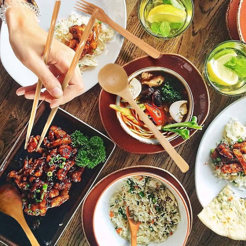 • PREMIUM QUALITY BAMBOO: Our bamboo utensils are crafted from 100% Natural Bamboo. Bamboo is a green alternative to disposable plastic utensils.
