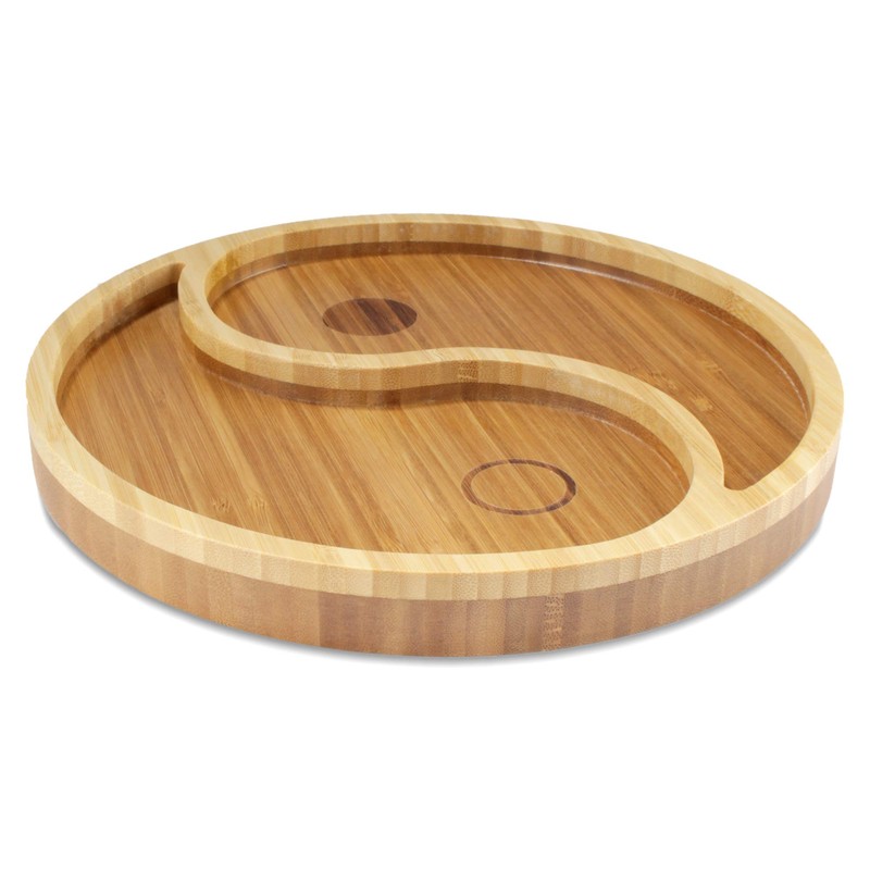 BambooMN Portion Control Plates - 9" Bamboo Ecoware Reusable Dinnerware Divided Round Plates for Adults and Kids, Yin Yang, 1 Pc