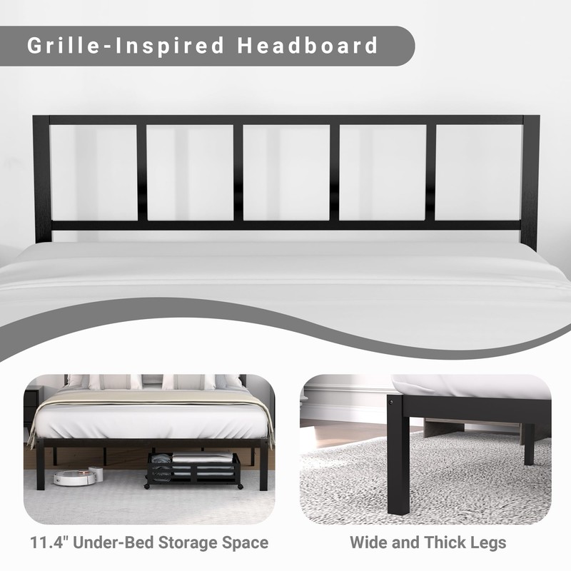 - GRILLE-INSPIRED HEADBOARD: Based on the love of linear elements, we adopted a grille-inspired bedframe headboard, which not only protects our head and provides a comfortable sitting place but also adds a sense of order and hierarchy.