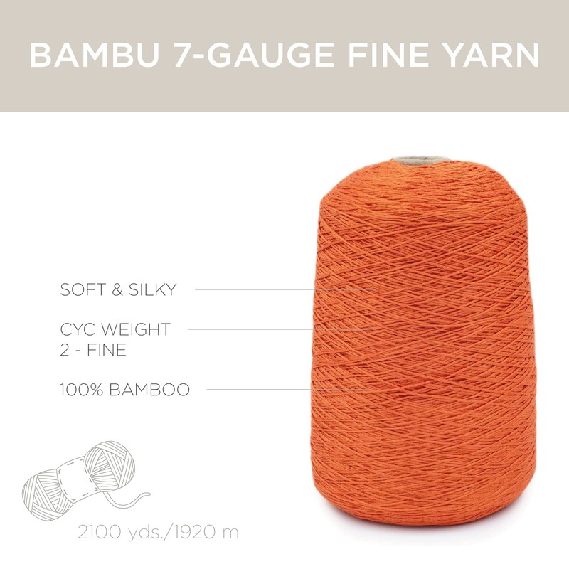 Whether you’re a new hobbyist, an expert crochet artist, or a seasoned knitting enthusiast, Silk City Fibers has the right yarn for your needs. Luxurious and beautifully colored, our Bambu 7-gauge 100% bamboo knitting yarn is easy to use to create cozy and lightweight items, like baby blankets, shawls, and more. Available in multiple colors, this thin yarn will help you impress your friends and family with the lovely hue and style of your crafting, 7-gauge handloom machine knitting, crocheting, embroidering, and weaving crafts.
