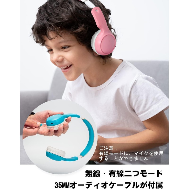 BAMINI Kids' Headphones, Bluetooth, Children's Headphones, Volume Limit, 85 dB/94 DB, Lightweight 3.5 oz (98 g), Microphone Included, 20 Hours of Continuous Playback, Wireless