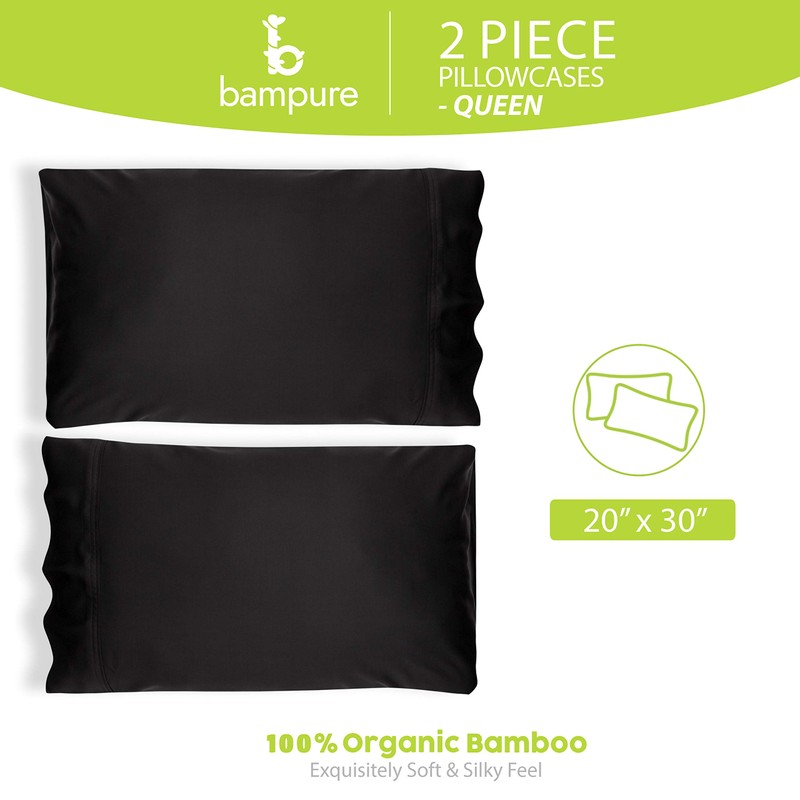 BAMPURE Bamboo Pillowcase Queen Bamboo Pillow Case Queen Size (20x30) - 100% Organic Bamboo Large Pillow Cases Cooling Pillowcase Cooling Pillow Cases Cool Pillow Cases Set of 2 Pillowcases Black
