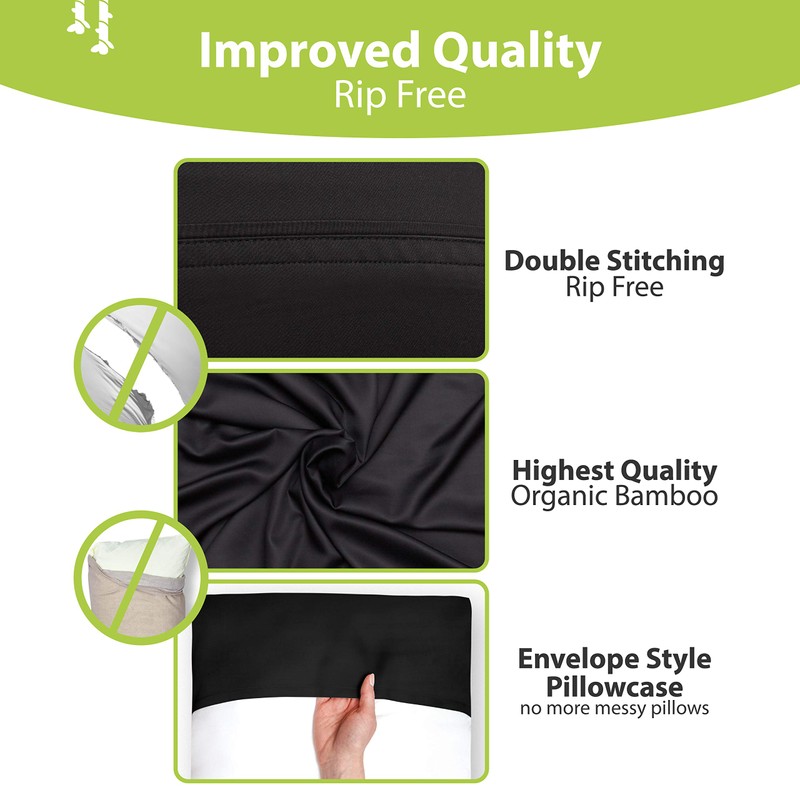 • 2 piece premium envelope pillowcase set - included in this deluxe set are 2 bamboo queen size pillow cases with envelope closure end design. These pillowcases queen size are 20” x 30”.