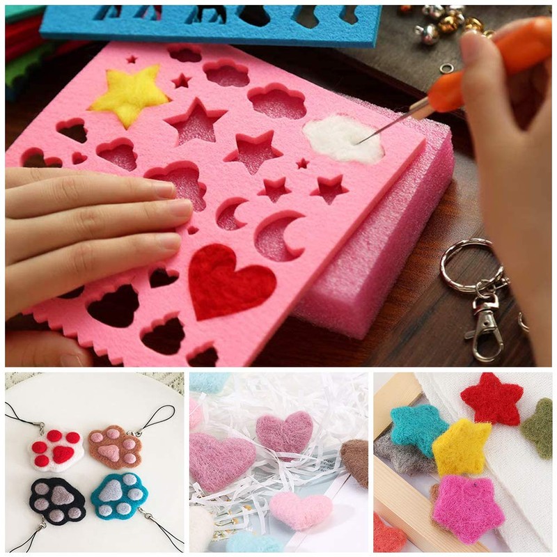 - Other needle felting accessories: the package also includes colorful wooden handles, scissors, wool felt mold, foam cushion, awl, pliers and other accessories for felting.