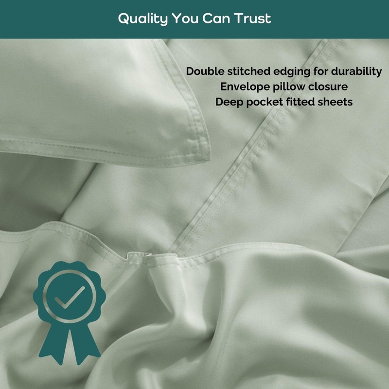 Say goodbye to restless, sweaty nights and hello to cooling sheet comfort, pure luxury, and effortless sleep! Our 100% Viscose Derived from Bamboo California King Sheet Set is designed for hot sleepers who crave a soft sheet that's cool, dry, and refreshing sleep experience. Breathable, moisture-wicking sheets, and temperature-regulating sheets, these bedding pull away heat and sweat, keeping you comfortable all night long. Softer than cotton, silkier than linen, they offer a buttery-smooth, hotel-style sleep luxury experience you’ll love sinking into. No more slipping or messy california king bed cause our deep pocket California King fitted sheet with corner straps stays perfectly in place, while envelope closure pillowcases keep pillows snug and secure. Cal King Sheets that's Built for lasting durability, these anti-pilling, snag-resistant, wrinkle free cooling sheets look as good as they feel, wash after wash. Plus, they’re hypoallergenic bed sheets, pet hair-resistant bed sheets, and free from harsh chemicals, making them the perfect choice for sensitive skin. Upgrade your sleep and wake up feeling truly refreshed - because you deserve better. Diga adiós a las noches inquietas y sudorosas y dé la bienvenida a la comodidad refrescante, el lujo puro y el sueño sin esfuerzo. Nuestro juego de sábanas California King 100% Viscosa Derivada del Bambú está diseñado para durmientes calurosos que anhelan una experiencia de sueño fresca, seca y refrescante. Estas sábanas transpirables, que absorben la humedad y regulan la temperatura, alejan el calor y el sudor, manteniéndole cómodo toda la noche. Más suaves que el algodón y más sedosas que el lino, estas sábanas ofrecen una experiencia de sueño de lujo al más puro estilo hotelero en la que le encantará sumergirse. Se acabaron los resbalones y las camas desordenadas, porque nuestra sábana bajera California King con tiras en las esquinas se mantiene perfectamente en su sitio,