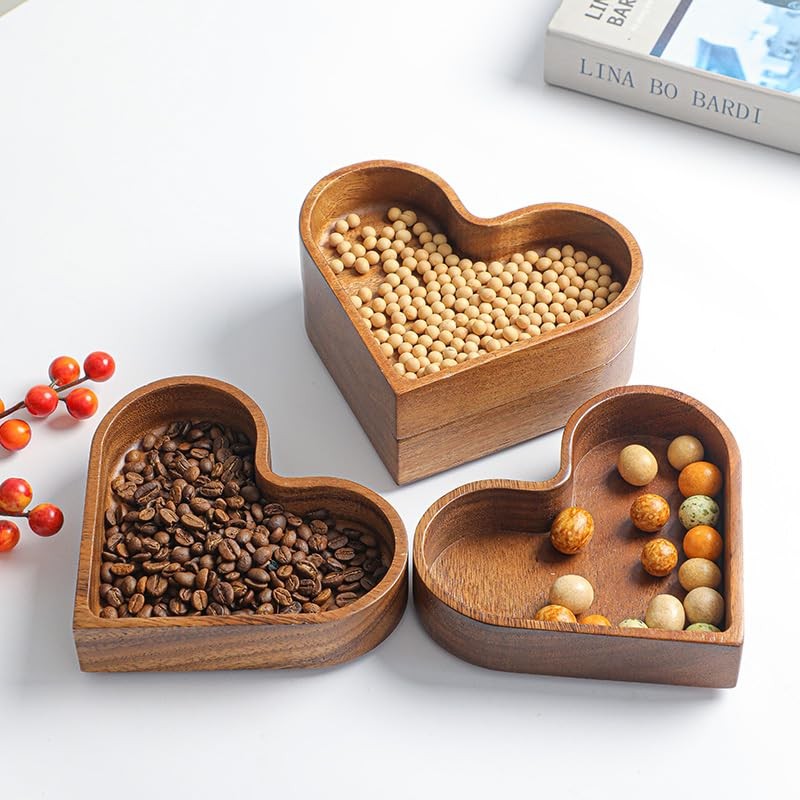 Bamxzoo Heart Shaped Wooden Dessert Plates 6"(Set of 2)-100% Natural Walnut Wood Appetizer Platter for Serving Snacks and Food-Decorative Small Serving Plates for Cheese, Charcuterie and Sandwiches